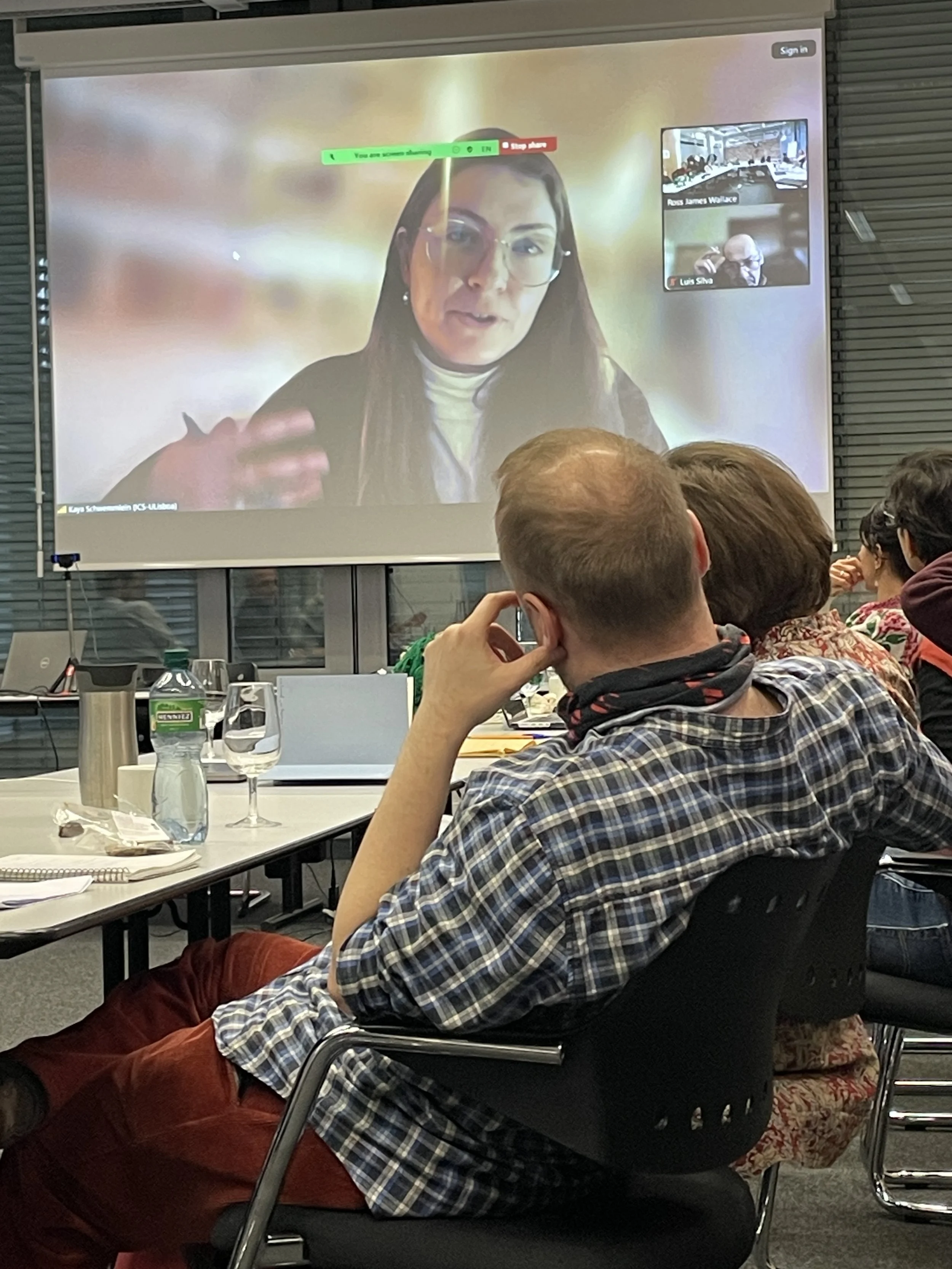 Kaya Schwemmlein (University of Lisbon) summarises her group's discussion. The online group also included Luís Silva (NOVA University Lisbon), Josefa Sánchez Contreras (University of Granada), and Alberto Matarán Ruiz (University of Granada).
