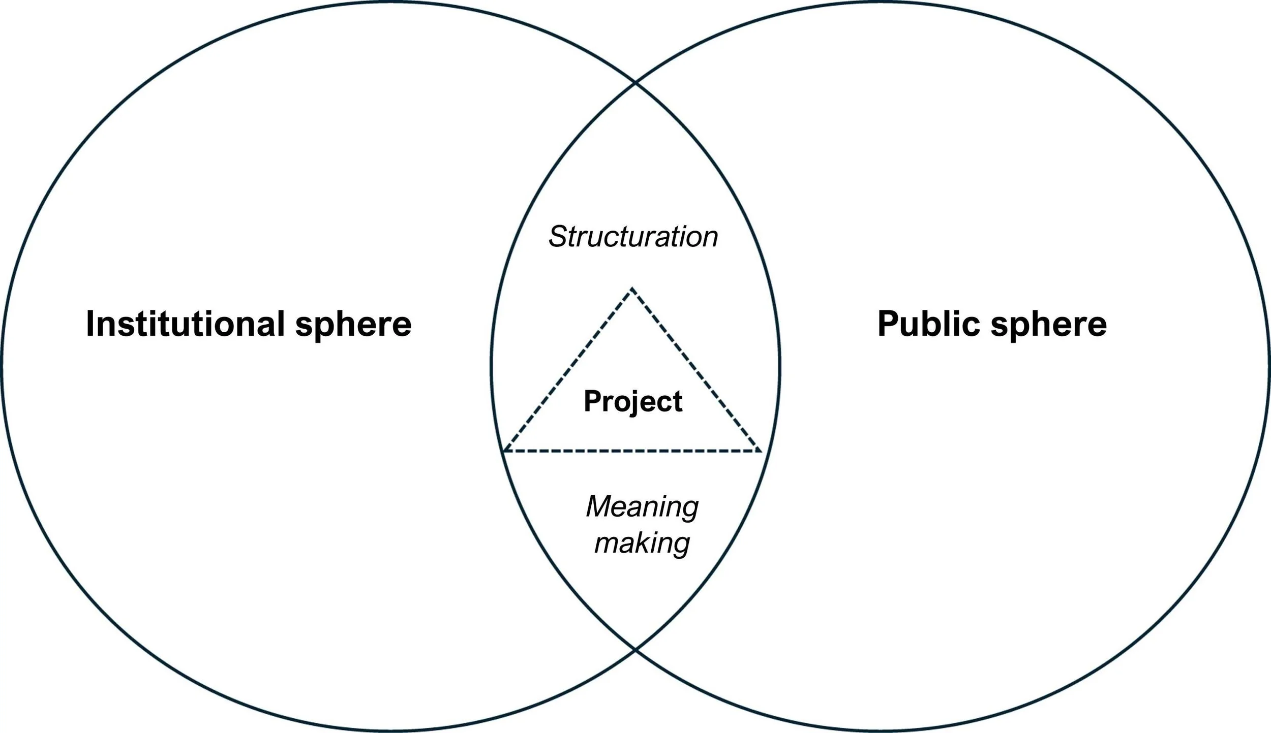 Building on the cultural political economy approach, this simple conceptual model allows us to think about large-scale renewable energy projects as being shaped by the relations between institutions and civil society.